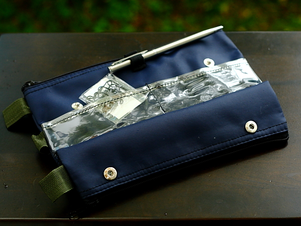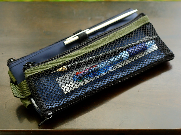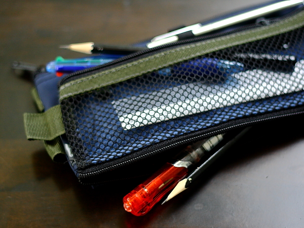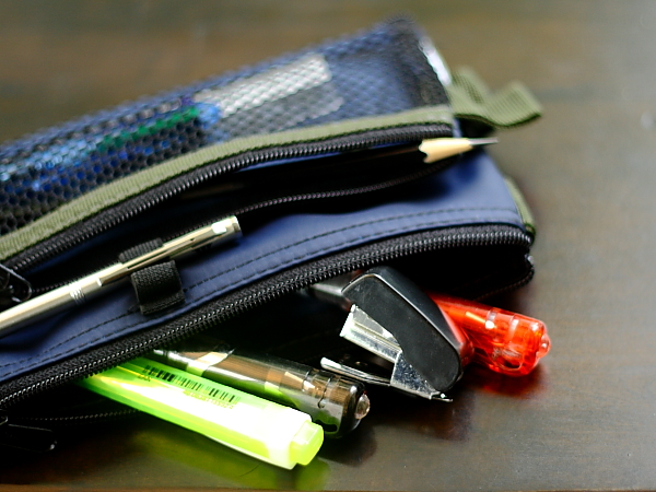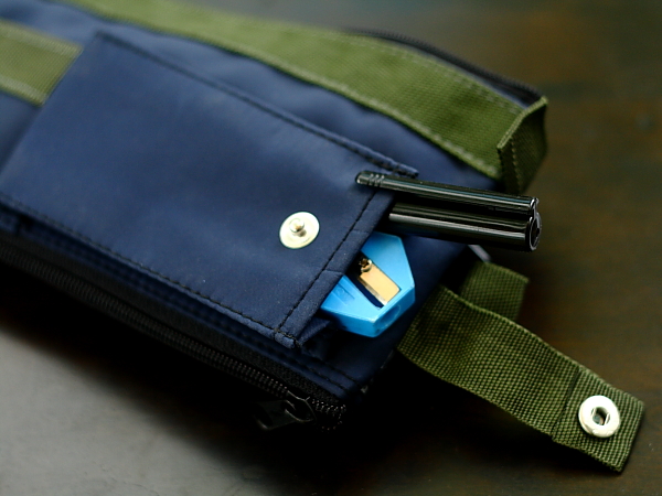 the bottom of pencil case for easy access. In front is equipped with a