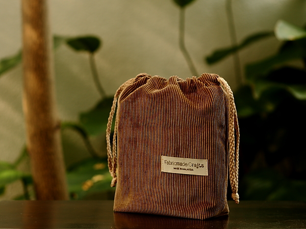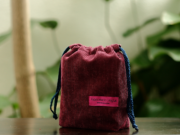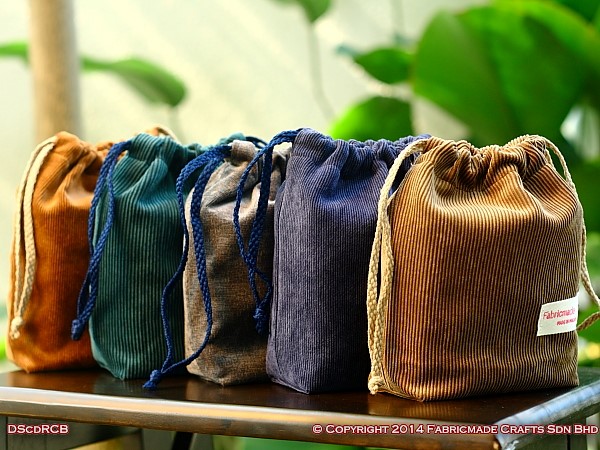 Product Description: Rectangle-Base drawstring bags featuring corduroy fabric (DScdRCB) outer layer with internal decorative cotton fabric. Reversible patterns (two useable sides) that gives you different look and feel.